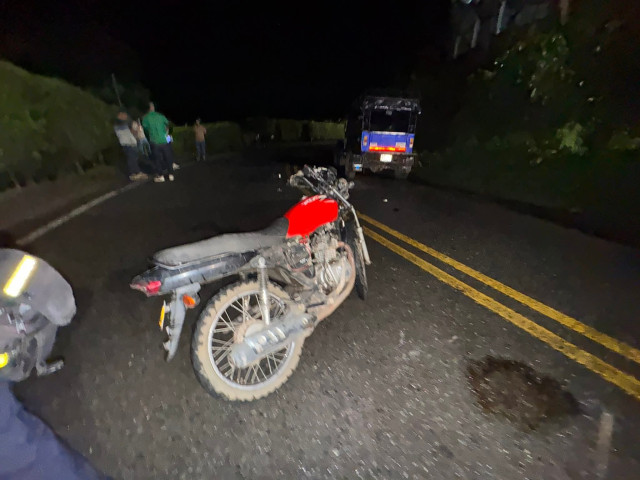 La Troncal de Occidente, entre Almacafé y Terraplén, en Riosucio, fue escenario en la noche de este sábado 28 de junio de una colisión entre un campero Carpati (Cootransrío) y una motocicleta AX 4.