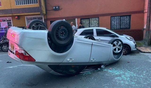 Manizales. En la carrera 26, entre calles 20 y 21, un hombre perdió el control de su Chevrolet Cruze gris y terminó volcado, luego de golpear otros automotores. Fue el sábado y atendieron Bomberos y ByR. El conductor sufrió trauma en la cabeza.