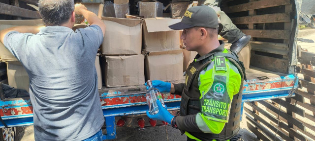 Al verificar la carga, hallaron 1.627 botellas de licor de marca "Superior" distribuidas en varias cajas, sin contar con los debidos sellos de seguridad ni estampillas que acreditaran su legalidad, lo que generó sospechas de posible contrabando o adulteración.