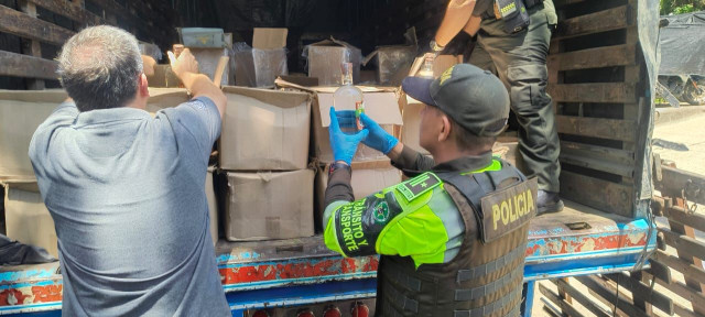 En las últimas horas, en la vía Honda - Puerto Boyacá, a la altura del kilómetro 23, unidades adscritas a la Seccional Tránsito y Transportes lograron la incautación de de licor, al parecer de contrabando, evitando así una posible afectación a la salud pública y una millonaria evasión fiscal.
