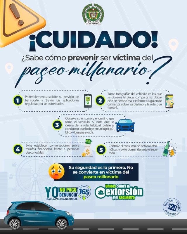 Las autoridades entregan consejos para que las personas eviten caer en casos de extorsión carcelaria con la suplantación de grupos armados, o en el llamado paseo millonario.