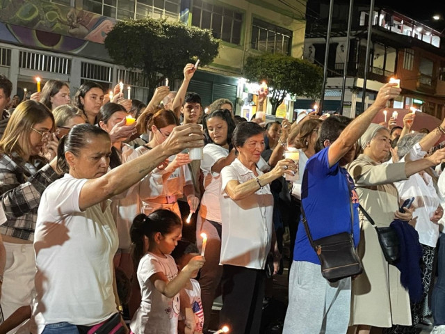 En el parque principal de Aranzazu se reunieron para una velatón por Cindy Yanine Cardona Marín, quien fue asesinada por su expareja el pasado domingo.