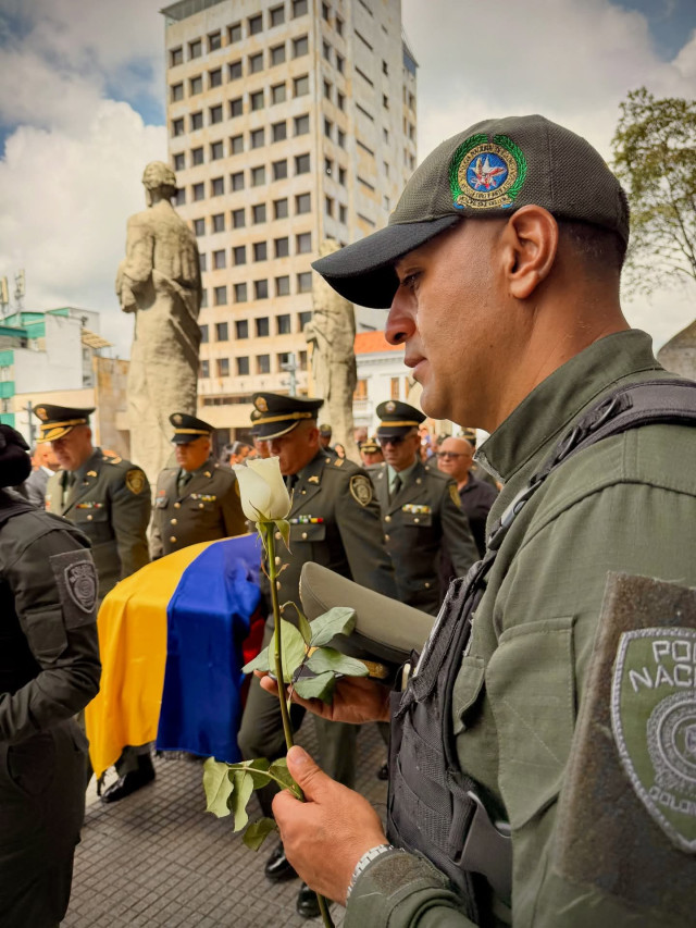 Este lunes 29 de septiembre, en emotiva ceremonia de honras fúnebres, realizada con honor y solemnidad, la coronel Rocío Milena Melo Puerto, comandante del Departamento de Policía Caldas, acompañó a su familia, compañeros y comunidad en este momento de dolor.