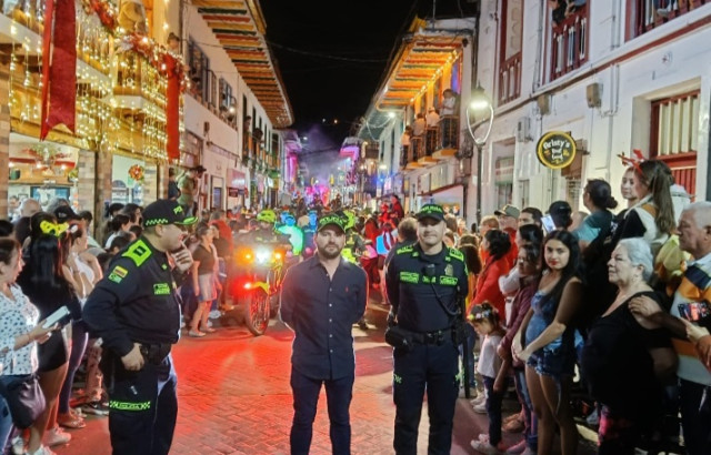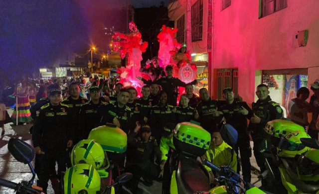 La Policía de Neira, en cabeza del comandante, el intendente jefe Juan Pablo Hurtado, y el comandante del Distrito, coronel Juan Hernández, le puso su propio toque al desfile de recibimiento de la Navidad en esta población del Norte de Caldas.