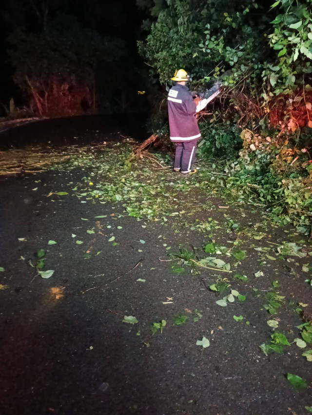 En Risaralda, miembros de Bomberos y de la Alcaldía llevaron a cabo la poda y despeje de dos árboles que cayeron sobre la vía a Las Margaritas.