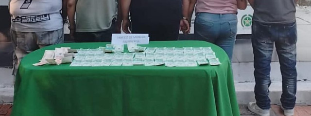 El operativo permitió la identificación y captura de cinco personas -dos mujeres y tres hombres-, con edades entre los 28 y 59 años de edad, procedentes de Bogotá. Tras realizarles una requisa les encontraron $11 millones 60 mil en billetes de diferentes denominaciones.