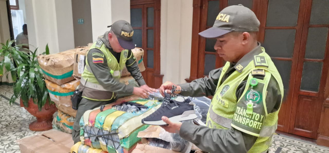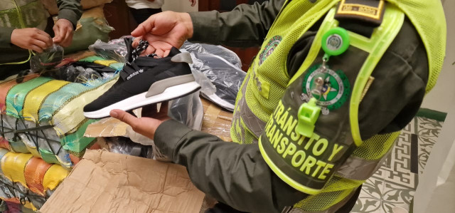 7.100 tenis, avaluados en $1.000 millones según la Policía, incautó la Seccional de Tránsito y Transportes en la vía La Estrella – El Palo, kilómetro 46, zona rural de Riosucio.