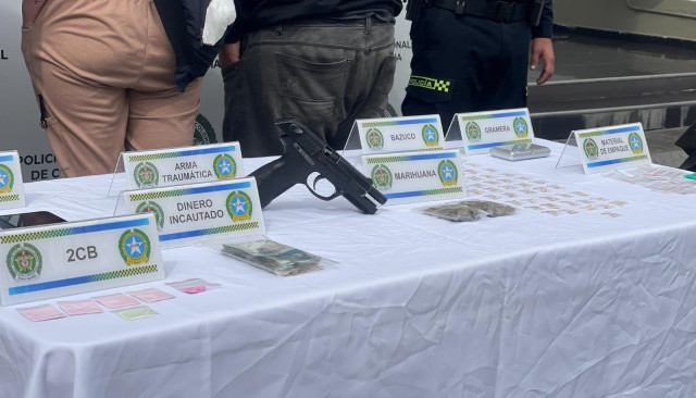 Adicionalmente, en desarrollo del operativo, fueron incautados: 10,48 gramos de bazuco, 2 celulares, 1 gramera, 1 arma de fuego traumática de menor letalidad, 1 motocicleta AKT 125, 18,63 gramos de marihuana, 6,41 gramos de tusi.