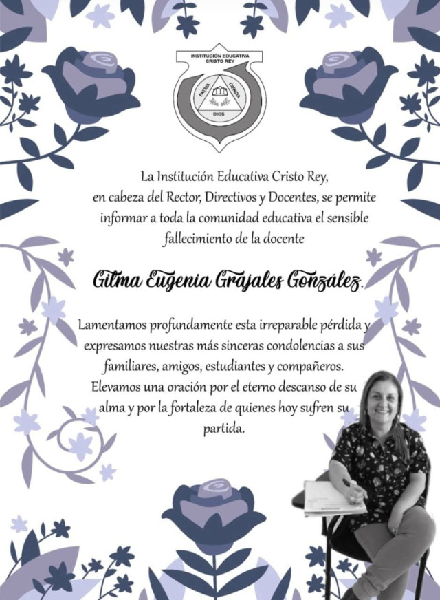 La comunidad lamentó esta sensible pérdida y la recordaron como una docente muy dedicada a sus labores.