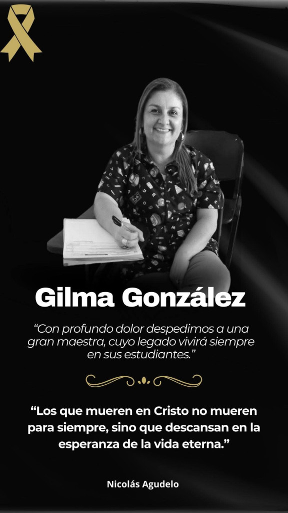 "Su sonrisa contagiosa y su gran amor por la formación de nuestros niños y niñas siempre será la mejor muestra de un trabajo hecho con amor y dedicación... Vuelta alto profe Gilma, siempre te recordaré con mucho amor y gran admiración", Camila Rave.