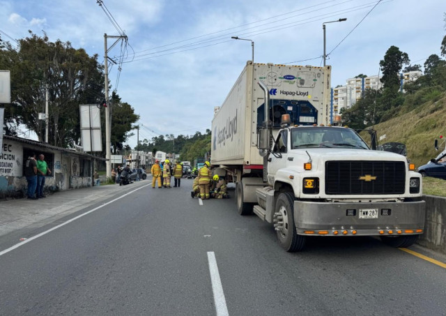 Se indicó que chocaron tractomula y moto. La parrillera de esta última quedó debajo del automotor y habría sufrido fractura en una pierna, con abundante sangrado.
