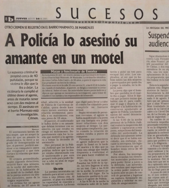 El crimen ocurrió durante una cita en un motel, Donde López, entonces de 18 años, infligió 59 heridas con arma blanca al uniformado.