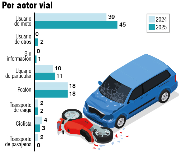 Caldas reportó 75 víctimas en los primeros seis meses del 2024, en el 2025 hubo 82, un 9,3% más. Manizales pasó de 20 a 27 muertes, con un 35% de aumento.