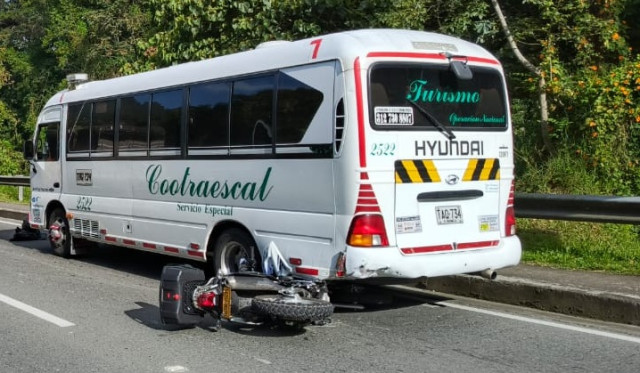 Se presentó esta mañana de martes 12 de agosto un choque en la Panamericana, sector Lusitania, de Manizales. Colisionaron moto y buseta.