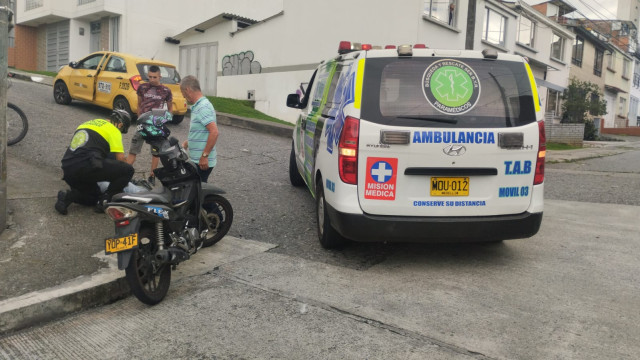 En la tarde del sábado, en la carrera 18A con calle 50, en el barrio San Jorge, la conductora de una motocicleta perdió el control y cayó. Sufrió un golpe en un brazo. Búsqueda y Rescate (ByR) la atendió.