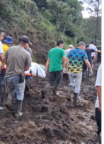 "Hoy encontramos decenas de deslizamientos y uno de ellos se llevó una casa completamente. Encontramos en la vereda Verdal Bajo, entre Arboleda y Puerto Venus [corregimiento de Nariño, Antioquia]. Hallamos sin vida a dos adultos mayores. No sabemos si había más personas en la vivienda. Ya mandamos maquinaria para mover derrumbes y también reportamos pérdida de banca entre Pensilvania y Pueblo Nuevo".