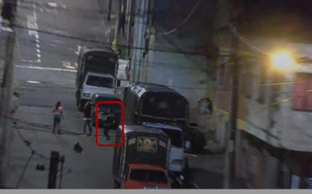 1- Juan Pablo fue visto por cámaras (verde militar con capota), en compañía de otro sujeto, al parecer, portando un arma blanca y de forma desafiante, segundos antes.