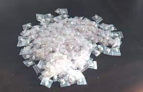 Por ejemplo, en una habitación, 50 bolsas plásticas pequeñas y transparentes de cierre hermético con bazuco y gramera digital.