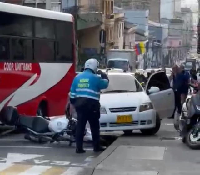 Al parecer, el carro iba rápido, el uniformado le pidió parar, pero el ciudadano le tiró el automotor al guarda y este último alcanzó a lanzarse de la motocicleta oficial.