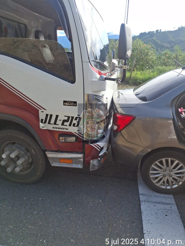 El primer hecho se registró en la vereda Partidas, donde un vehículo de carga colisionó por la parte trasera a un automóvil.