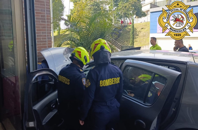 Se atendió esta mañana de martes 23 de septiembre un siniestro vial en Manizales, donde la conductora de un automóvil perdió el control del carro e impactó contra un muro a la entrada del Centro Comercial Fundadores.