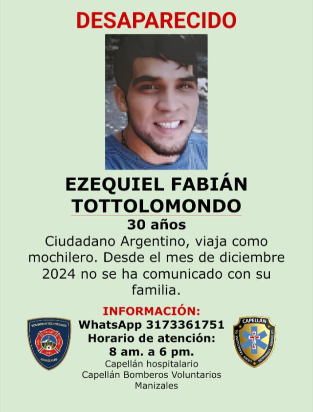 Sucesos 2026-01-06 Uno de los 3 reportados. Autor Redacción Judicial Se reportó la desaparición de 3 personas. Una es de Manizales, pérdida desde finales de diciembre Otro partió de Argentina como mochilero hace unos meses y se cree que puede estar por esta zona y otro extranjero vive en la vía a Neira. Temas Destacados (etiquetas) Manizales Eje Cafetero Argentina Estados Unidos