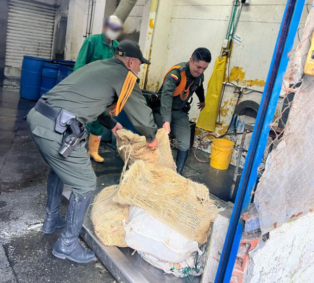 Se incautaron en diferentes expendios y vía pública del sector de la Galería de Manizales: 195 kilos de pescado, 200 kilos de carne y 35 kilos de pollo.