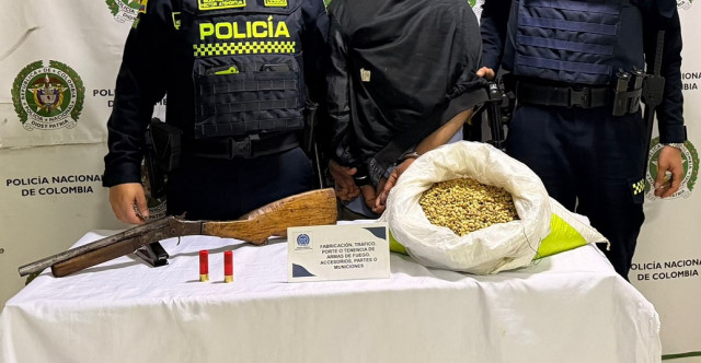 Escondida entre los granos llevaba la changón y dos cartuchos calibre 16. Lo capturaron y quedó en manos de la Fiscalía, para la imputación de cargos.