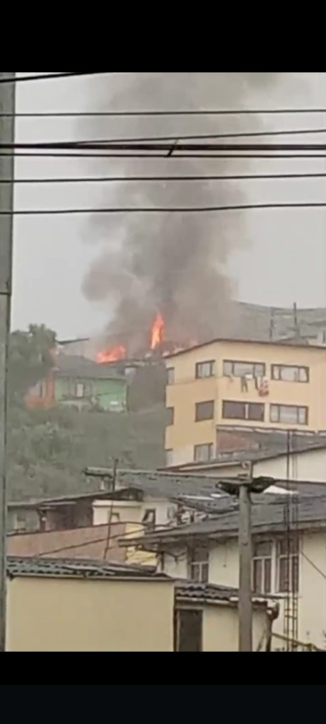 Fotos | Captura de video | LA PATRIA Esta fue la casa incendiada. El Cuerpo de Bomberos llegó a atender la emergencia.