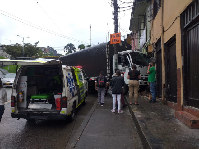 Manizales. La Fundación de Paramédicos Búsqueda y Rescate atendió este accidente de tránsito ayer en la carrera 25 con calle 37. Un camión se estrelló con otro carro y terminó contra una casa. Una persona resultó lesionada.