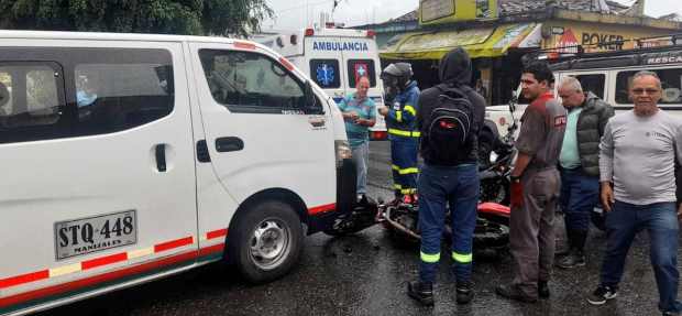 2. Con una ambulancia y dos unidades prestaron auxilio a un motociclista, quien cayó sobre la calle 8 con carrera 11. Lo llevaron hasta el Hospital San Marcos.