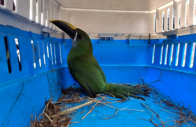 Hasta la institución llegó un ciudadano, quien entregó en la guardia un tucán esmeralda, también con problemas para emprender vuelo. Posteriormente los trasladaron a una sede de la Corporación, donde se llevará a cabo su valoración y posible liberación en su hábitat natural.