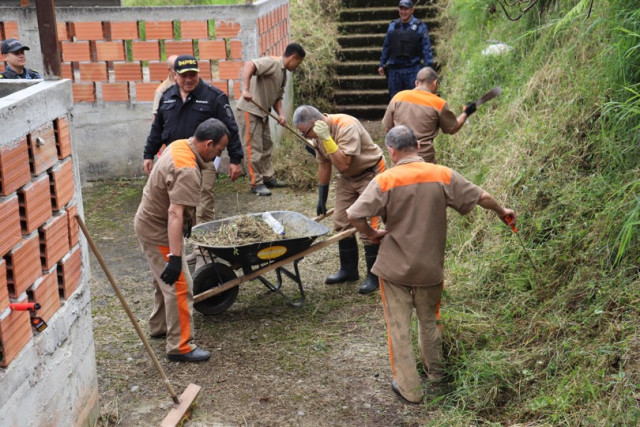 Los internos podaron zonas verdes, hicieron mantenimiento a las graderías del coliseo y lavaron algunos espacios del recinto ferial.