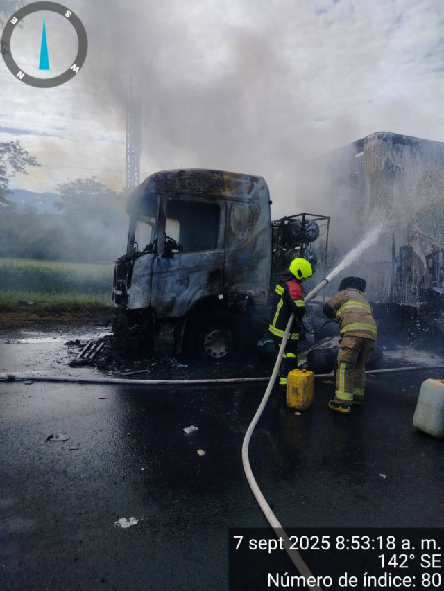 Tres máquinas extintoras y un carrotanque fueron necesarios para atender la emergencia. Se evitó que la cabina se incendiara.