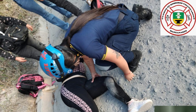 En Manzanares, en el sector de Badoo, en la carretera a Petaqueros, una mujer resultó lesionada en una pierna el pasado jueves, tras caer de la motocicleta que conducía.