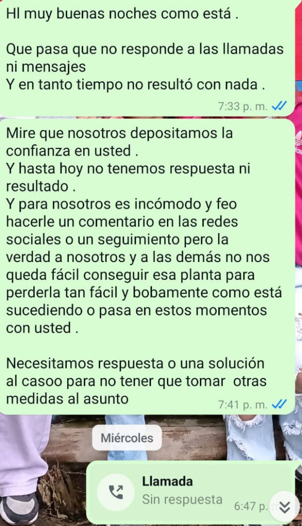 Hoy, las tres familias se sienten estafadas por un hombre que se ganó su confianza y prometió cosas que no cumplió. Tampoco contesta llamadas ni mensajes a su WhatsApp. Quieren la devolución su dinero y evitar que otras personas caigan.