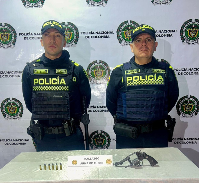 En la carrera 22 con calle 9 barrio La Arboleda hallaron un revólver calibre 38, con cinco cartuchos para el mismo.