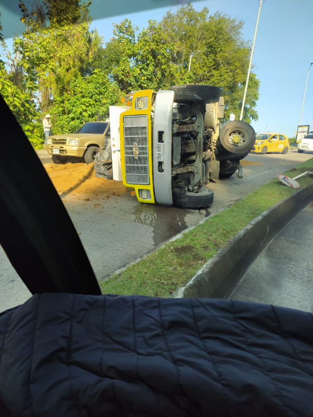No hay lesionados. Al parecer, a la volqueta se le dañó el eje.