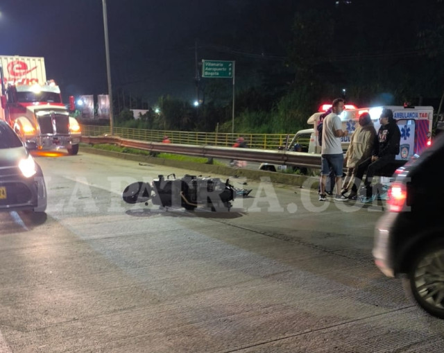 Una motocicleta y un automóvil chocaron cerca de las 8:00 de la noche de este sábado, en la carretera Panamericana, en sentido La Enea - Centro, de Manizales.