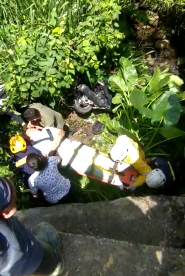 A la 1:05 p.m., en el sector del Puente de Cemento, rescataron a un motociclista que se salió de la vía y cayó por un barranco.