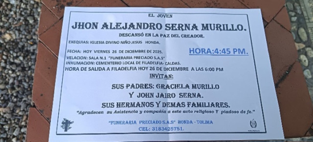 Jhon Alejandro, hijo de Graciela, secretaria de Hacienda de la Alcaldía de Filadelfia, era una persona ampliamente conocida y apreciada en el municipio de Honda, no solo por su trabajo, sino por la cercanía que mantenía con muchas personas de la comunidad.