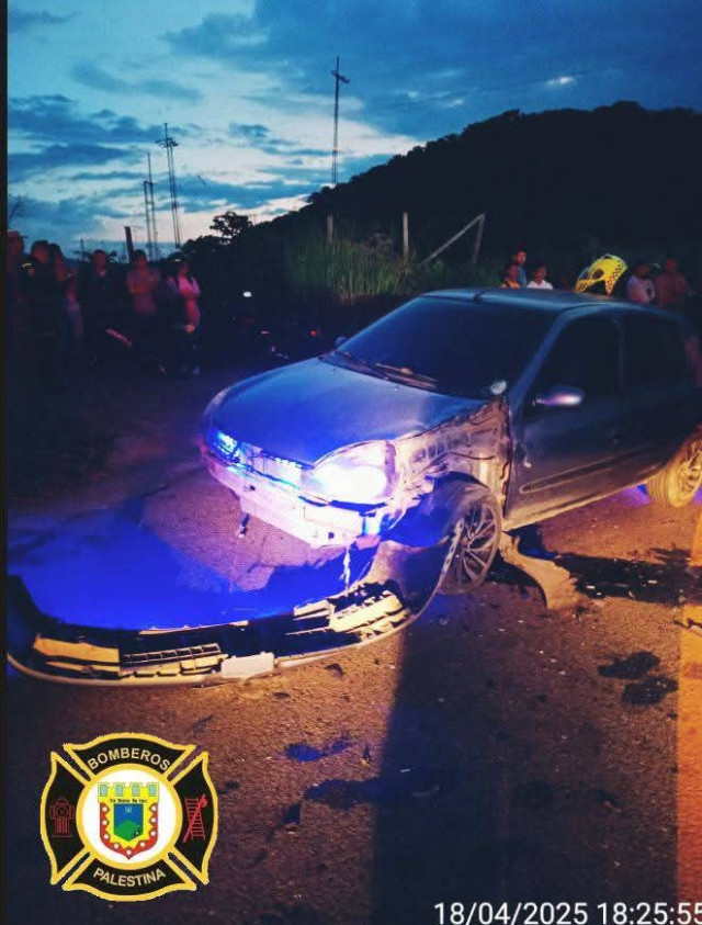 En la noche de Viernes Santo (18 de abril), Bomberos Palestina atendió un accidente de tránsito en la vía a la vereda La Plata, sector La Argentina.