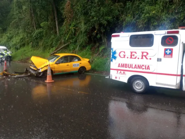 Un taxi y un camión chocaron. Alexandra Montero Urrego, de 25 años, resultó lesionada. Sufrió golpes en la cabeza. El Grupo Especial de Rescate (GER) la trasladó a la clínica San Marcel.
