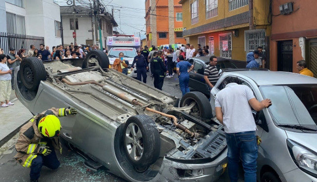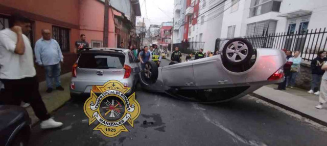 Un volcamiento vehicular se presentó en la tarde de este sábado en Manizales. En la carrera 26 con calle 20, una cuadra después de subir la falda de la Institución Educativa Gran Colombia, el Cuerpo Oficial de Bomberos atendió el accidente.