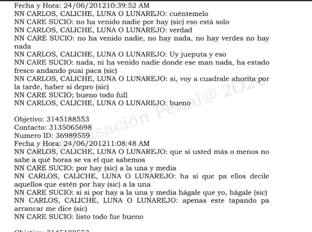 -La abogada Triana fundamentó su pretensión en la ausencia de prueba para cumplir con el estándar de conocimiento que exige la ley para emitir una decisión de condena. Cuestionó las transliteraciones de las interceptaciones endilgadas a Caresucio.