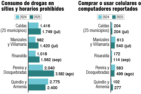 Si se comparan los datos con el total de los registrados en el 2024, se nota un aumento, similar a otros cuatro comportamientos, como consumo de sustancias, riñas, irrespeto a la autoridad y uso de elementos hurtados.