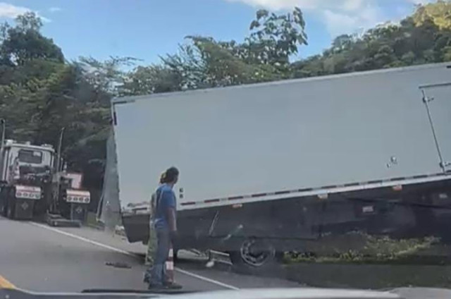 Un lector de LA PATRIA que viaja entre Manizales y Medellín en la tarde de este lunes 28 de abril envió un video de un accidente ocurrido cerca del peaje, adelante del sitio conocido como Chirapotó.