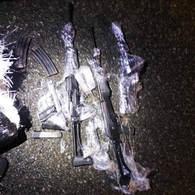 En el procedimiento, se les incautó 2 fusiles Galil calibre 5.56. 2.23 model 696IMI, con 2 proveedores, 1 fusil con emblemas American Tactical US con 1 proveedor y 2 pistolas Prieto Beretta, con 4 proveedores.