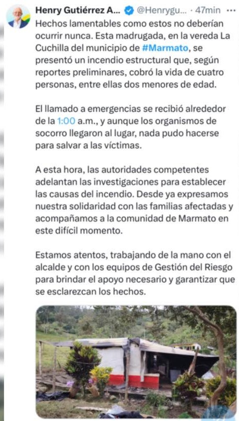 Lea más: Ya son cuatro los muertos por posible incendio en un municipio de Caldas: serían dos menores y sus padres