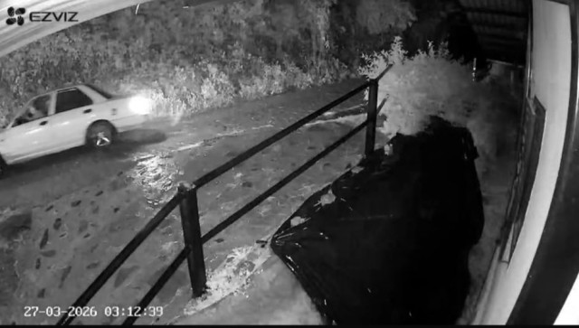 En las grabaciones se observa que la moto pasa por la zona un día antes. El día de los hechos cruza a las 9:40 p.m. y a las 2:30 a.m. pasa el carro. 10 minutos después se ve de nuevo, ya con los elementos hurtados. Los afectados ofrecieron gratificación por información.